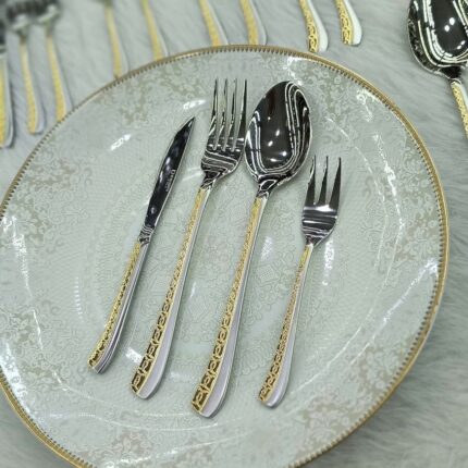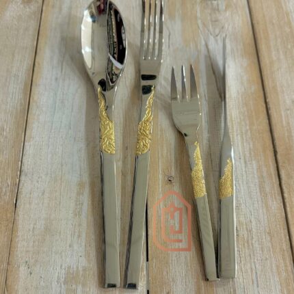 سرویس قاشق چنگال یونیک اصل آلمان 24 نفره 120 پارچه مدل جولیا سه بعدی طلایی