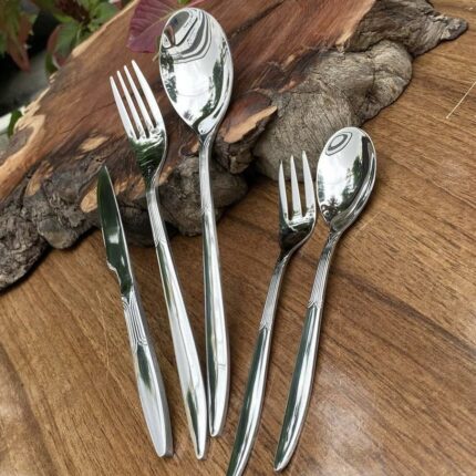 سرویس قاشق چنگال یونیک اصل آلمان 24 نفره 120 پارچه مدل سوزنی ماهی نقره ای
