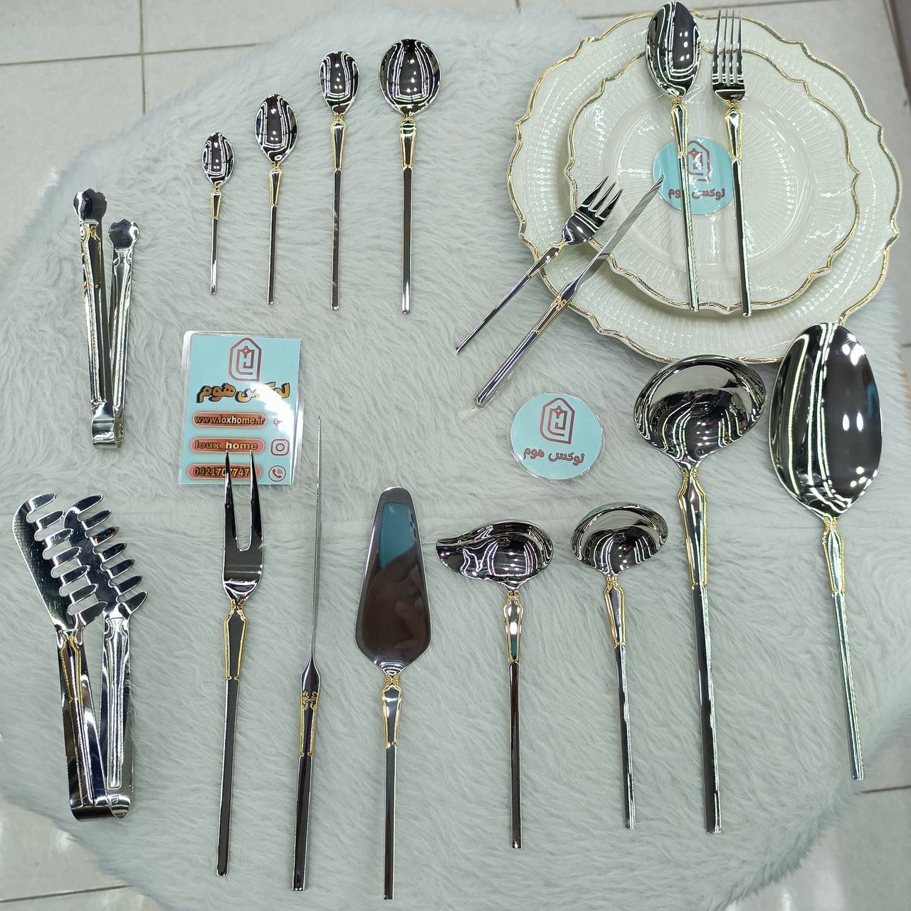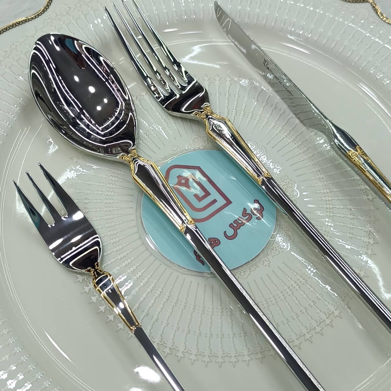 سرویس قاشق چنگال یونیک اصل آلمان 24 نفره 120 پارچه مدل سوزنی زنبوری نقره ای براق