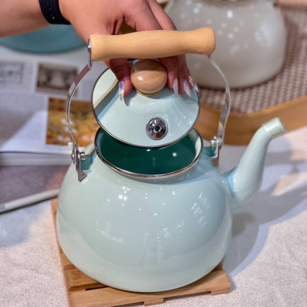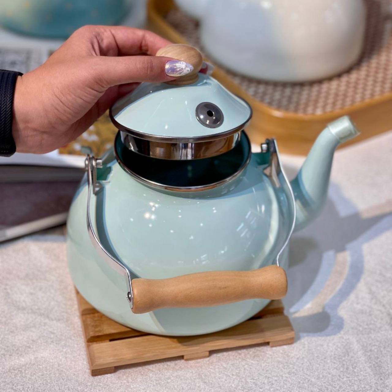 این کتری لعابی در دو رنگ جذاب کرم و سبز پاستیلی عرضه میشود تا به راحتی با دکور آشپزخانهتان هماهنگ گردد