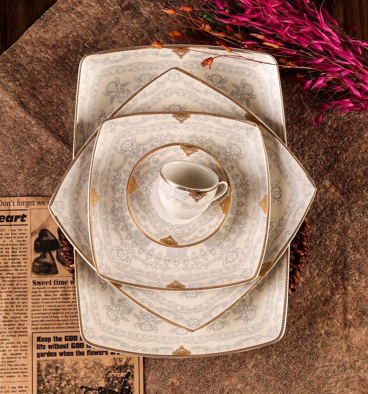 سرویس چینی پردیس ایزابل نیو بن چاینا 96 پارچه 12 نفره طرح مایکل شامل:
