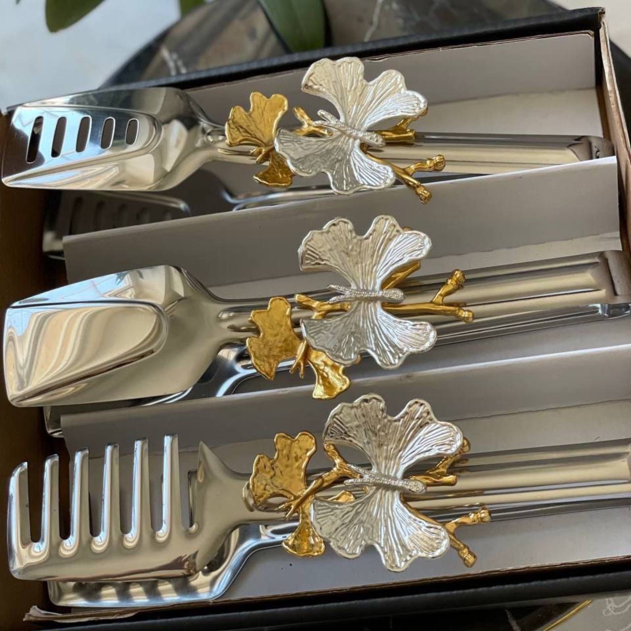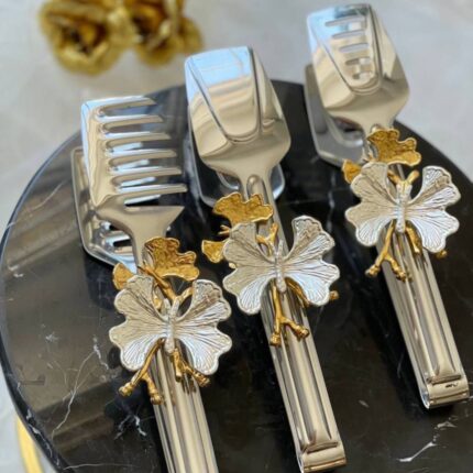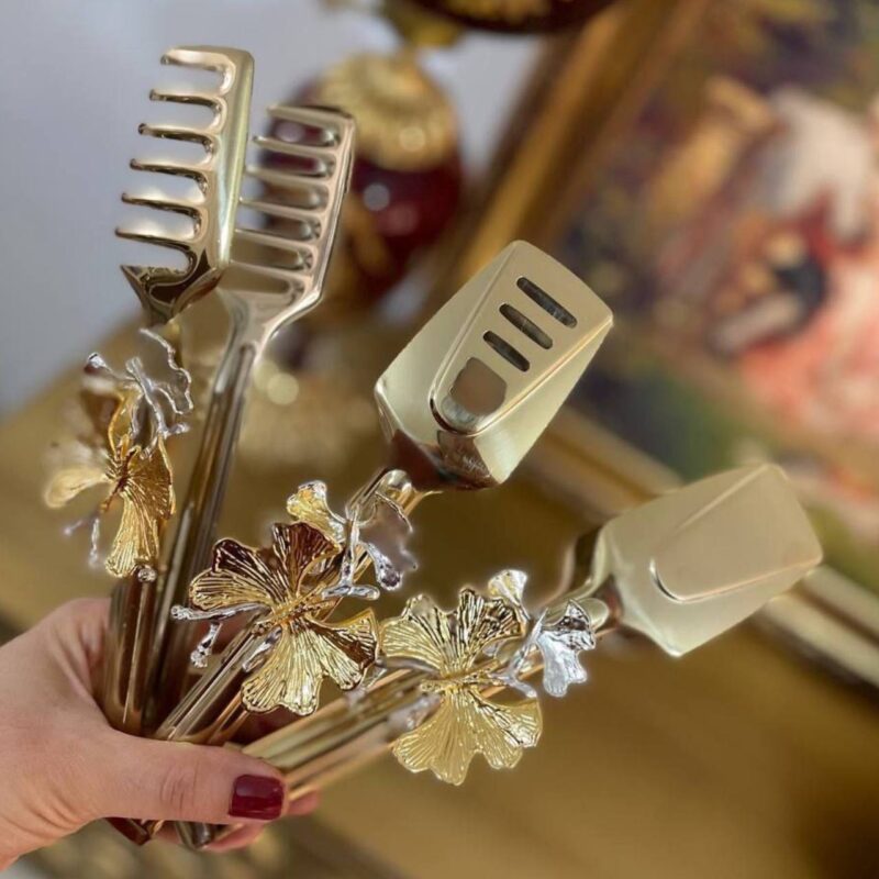 سوفله خوری رزلند استیل نقره ای پایه و دسته طلایی-چهار تیکه-Rozland