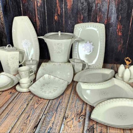 سرویس چینی بن چاینا استخوانی پردیس طرح مایا پلاتین برند ایزابل 96 پارچه 12 نفره